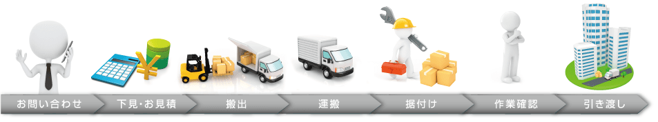 精密機械をエアーサスペンション車で輸送、そして、クリーンルームへの搬入は塵の出ない導電養生板を使用した床養生を行い、確実な据付までを行います。
